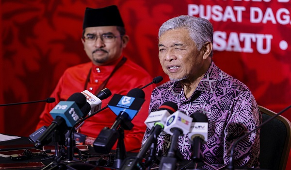 (Presiden UMNO, Datuk Seri Dr Ahmad Zahid Hamidi ketika sidang media sempena Perhimpunan
