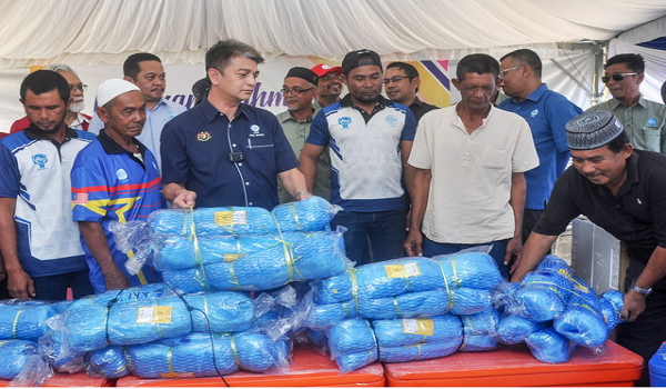 Beliau turut menyampaikan sumbangan enjin 40 kuasa kuda, pukat serta tong fiber kepada 22 penerima.
