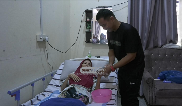 TUMPAT, 9 Januari – Seorang lelaki cekal menjaga isterinya yang menghidap kanser lidah sejak dua tahun lalu di Kampung Kubang Batang, Tumpat, Kelantan.