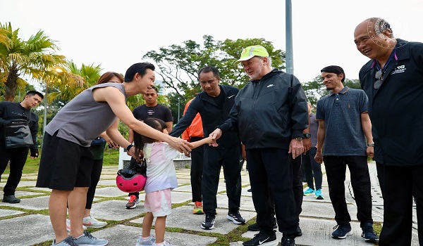 Seri Paduka Baginda tiba pada pukul 7.00 pagi dan disambut meriah oleh orang ramai yang sedang menjalani pelbagai aktiviti riadah seperti berjoging, berbasikal dan bersenam di taman rekreasi tersebut.