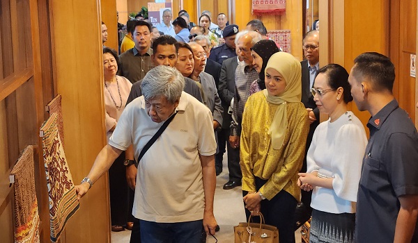 Baginda berdua berkenan melihat sendiri koleksi khazanah tradisional kaum Dayak di YTJ khususnya keunikan tenunan kain Pua Kumbu.