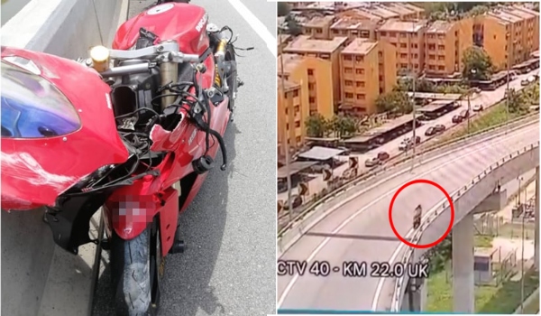 Mangsa yang menunggang motosikal berkuasa tinggi jenis Ducati Panigale itu cuba mengelak selepas sebuah motosikal yang dipandu melawan arus.