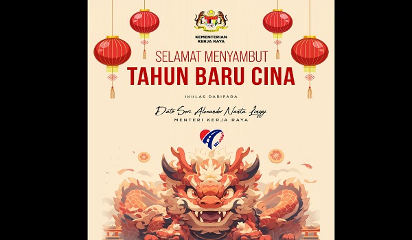 KUALA LUMPUR, 10 Februari- Menteri Kerja Raya Datuk Seri Alexander Nanta Linggi mengucapkan Selamat Tahun Baharu Cina kepada masyarakat Tionghua yang menyambut perayaan itu hari ini, dengan harapan kedatangan tahun naga akan membawa kebahagiaan dan rezeki yang bertambah.