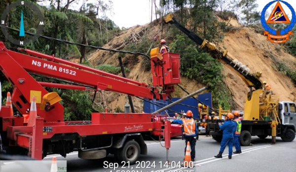 Ketua Polis Daerah Cameron Highlands, Deputi Superintenden Azri Ramli berkata kejadian itu menyebabkan sebahagian laluan terhalang ekoran tanah runtuh, pokok dan tiang elektrik yang tumbang.