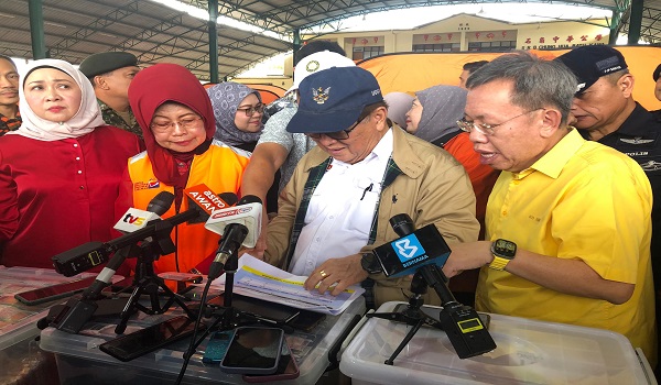 Datuk Amar Douglas ditemui media selepas melawat pusat pemindahan sementara (PPS) SJKC Chung Hua Batu Kawa pagi tadi.