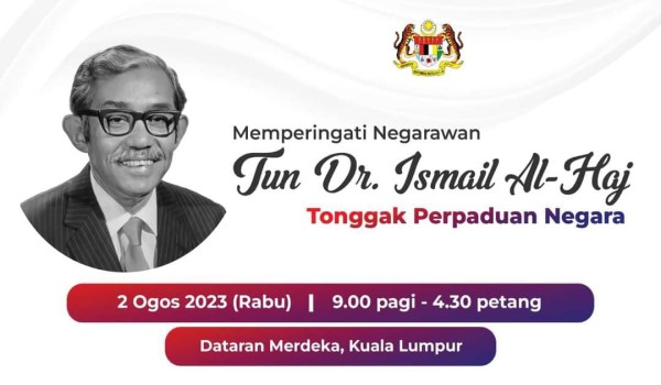 KUALA LUMPUR, 2 Ogos– Yang di-Pertuan Agong, Al-Sultan Abdullah Ri’ayatuddin Al- Mustafa Billah Shah menyeru rakyat khususnya para pemimpin untuk menghayati dan meneladani ketokohan serta jasa negarawan, Allahyarham Tun Dr. Ismail Abdul Rahman dalam membangunkan negara.