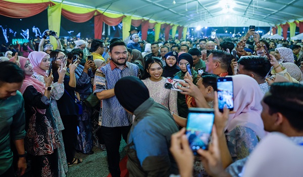 Majlis Santunan Kasih Pengantin Diraja Bersama Rakyat itu berlangsung meriah dengan kehadiran pelbagai lapisan masyarakat yang berpeluang beramah mesra dengan baginda berdua.