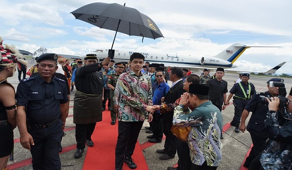 Keberangkatan tiba Tengku Hassanal pada 2.47 petang tadi disambut Timbalan Menteri Tenaga dan Kelestarian Alam Sekitar Sarawak Datuk Dr Hazland Abang Hipni.