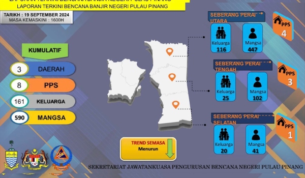 Menurut portal info bencana Jabatan Kebajikan Masyarakat (JKM), kesemua lapan PPS yang masih beroperasi, dibuka di daerah Seberang Perai Utara (SPU), SPT dan SPS.