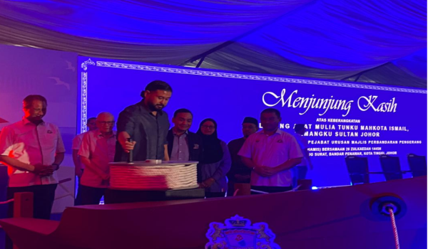 KOTA TINGGI, 6 Jun-Pemangku Sultan Johor, Tunku Mahkota Ismail berkenan menyempurnakan Majlis Pecah Tanah Pejabat Urusan Majlis Perbandaran Pengerang di sini, hari ini.
