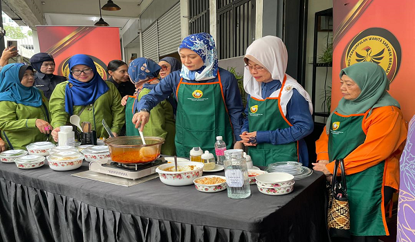 Toh Puan Fauziah turut meluangkan masa menyediakan bubur pedas dan beramah mesra bersama ahli KOPERWANIS serta peserta, mencerminkan keprihatinan beliau terhadap usaha memperkasa wanita dan ekonomi komuniti setempat.