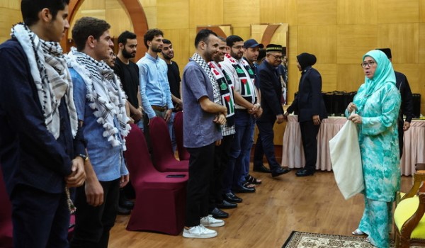 GOMBAK, 26 Oktober– Raja Permaisuri Agong, Tunku Azizah Aminah Maimunah Iskandariah berkenan mencemar duli menyantuni 22 pelajar Universiti Islam Antarabangsa Malaysia (UIAM) yang berasal dari Palestin.