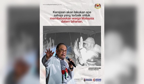 KUALA LUMPUR, 5 Oktober - Tindakan tegas dan strategik Perdana Menteri, Datuk Seri Anwar Ibrahim dalam usaha membebaskan 23 sukarelawan Malaysia daripada tahanan Israel mencerminkan kepimpinan yang berwawasan, berani serta berpaksikan prinsip diplomasi MADANI.