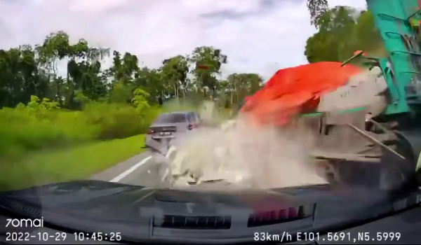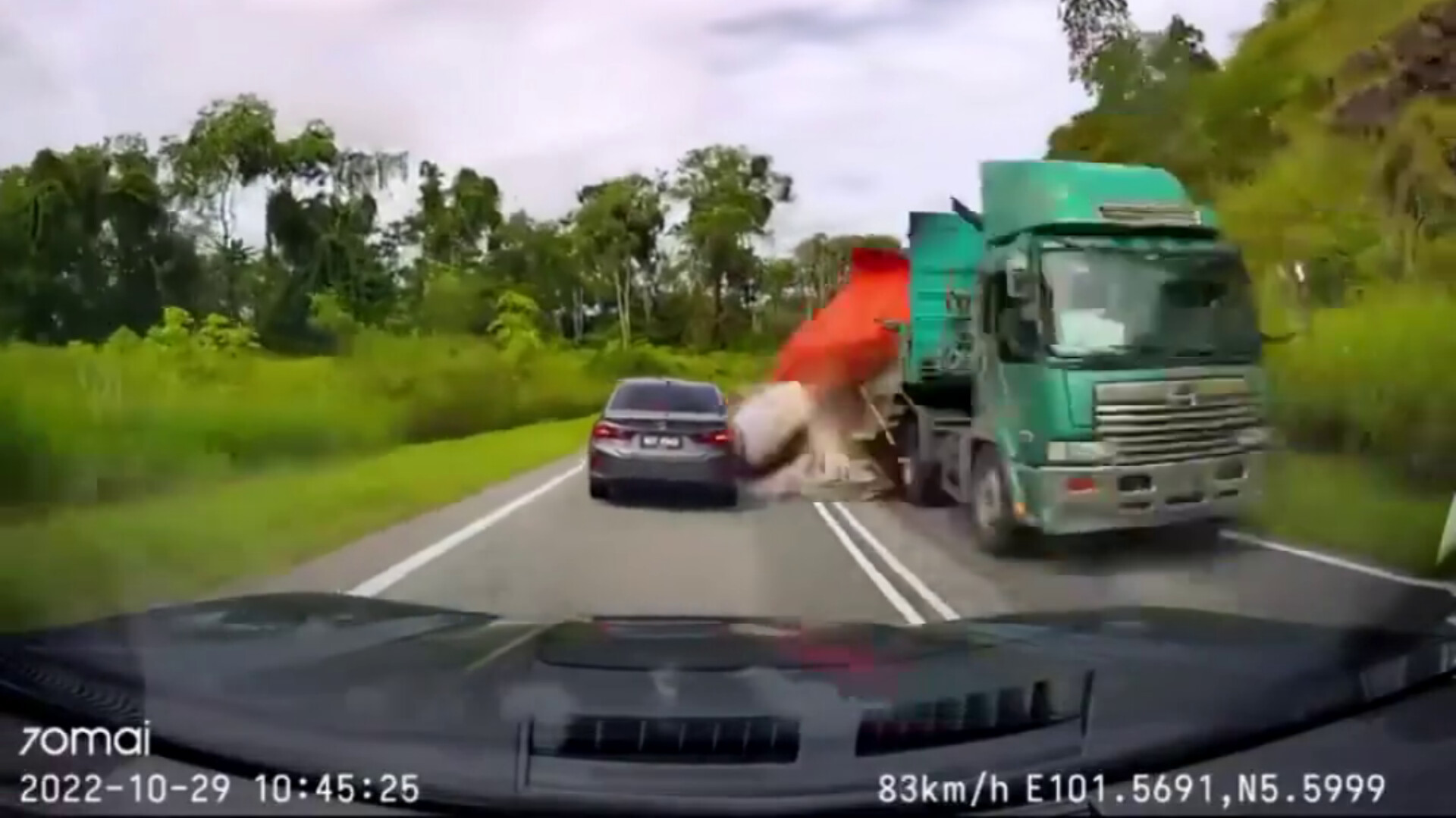 “Kemalangan berpunca daripada muatan siling putih yang dibawa treler berkenaan terjatuh ketika melalui selekoh, lalu menimpa sebuah kenderaan utiliti sukan (SUV).