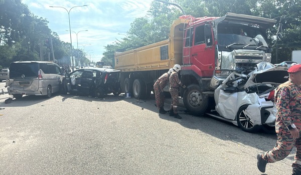 “Apabila sampai di tempat kejadian, lori berkenaan telah hilang kawalan dan terbabas sebelum melanggar lima kereta yang sedang berhenti di lampu isyarat merah.