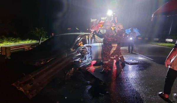 “Tiba di lokasi didapati, seorang mangsa wanita iaitu isteri pemandu tersepit di tempat duduk penumpang hadapan manakala pemandu keluar sendiri dari kenderaan dan penumpang belakang telah dikeluarkan oleh pihak ambulans,” katanya katanya dalam satu kenyataan.