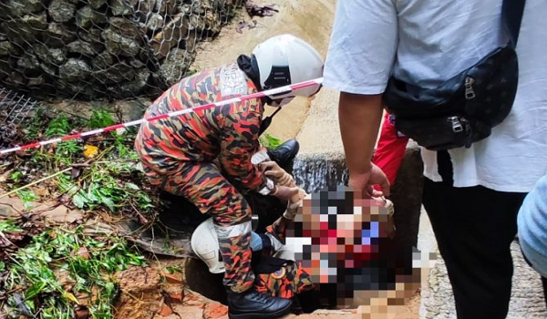“Sebaik tiba kami dapati seorang wanita yang melakukan aktiviti pendakian di kawasan tersebut telah terjatuh dalam keadaan terlentang dalam lubang saluran air sedalam kira-kira dua meter.