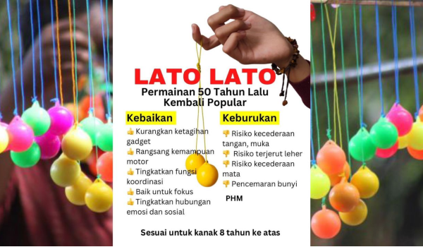 Dalam pada itu, pihak tersebut akui lato-lato juga ada kebaikannya iaitu melatih koordinasi, mengurangkan ketagihan pada gajet, merangsang kemampuan dan kawalan motor, baik untuk fokus serta meningkatkan hubungan emosi dan stabil.