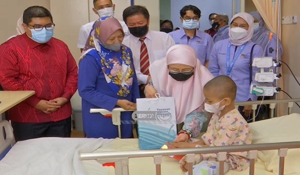 Sumbangan disampaikan oleh Ahli Parlimen Bandar Tun Razak, Cheras, Datuk Seri Dr Wan Azizah Wan Ismail yang turut meluangkan masa menyantuni pesakit kanser kanak-kanak di hopsital tersebut.