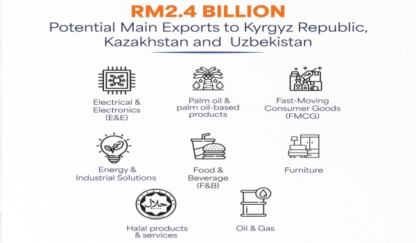 KUALA LUMPUR, 22 Mei– Potensi eksport bernilai RM2.4 bilion daripada perniagaan Kazakhstan dan Uzbekistan merupakan peluang besar yang boleh dimanfaatkan syarikat di Malaysia.