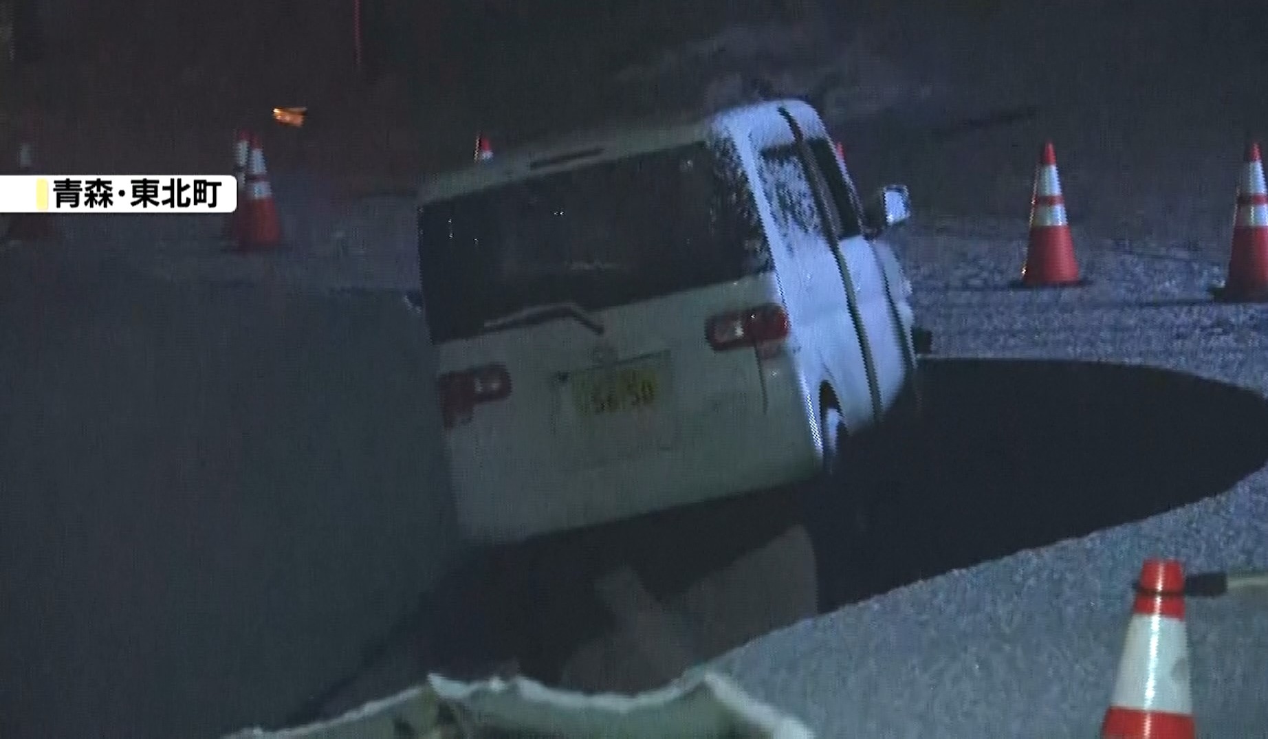 Sebuah laluan utama di Tokoku turut mendap sehingga sebuah kereta tersangkut di dalamnya.