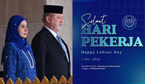 KUALA LUMPUR, 1 Mei- Yang di-Pertuan Agong Sultan Ibrahim serta Raja Permaisuri Agong Raja Zarith Sofiah menzahirkan ucapan selamat Hari Pekerja kepada semua rakyat Malaysia.