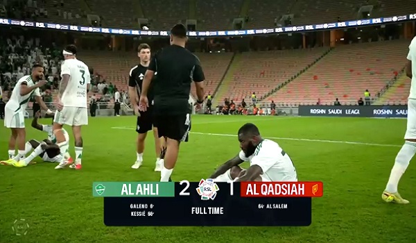 Pemain tengah Al-Ahli, Ziyah Aljohani, dilayangkan kad merah pada masa kecederaan babak pertama selepas didapati mengasari pemain Qadsiah, Otavio, ketika pasukannya sedang mendahului 1-0 hasil jaringan cantik Galeno pada minit ke-6.