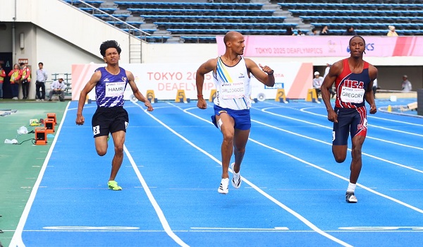 Pelari pecut negara, Muhammad Zamir Azman (paling kiri) terkandas di peringkat separuh akhir 100 meter lelaki Deaflympics 2025 di Jepun/ RTM