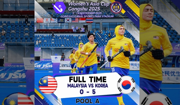 KUALA LUMPUR, 8 September - Hasrat skuad hoki wanita kebangsaan untuk mara ke pusingan ‘Super 4s’ Kejohanan Hoki Piala Asia Wanita 2025 di Hangzhou, China, terkubur selepas dibelasah juara tiga kali, Korea Selatan 0-5 pada aksi terakhir Kumpulan A, hari ini.