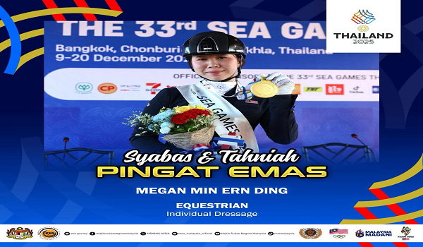 BANGKOK, 16 Disember - Kontinjen Malaysia terus menambah koleksi pingat emas Sukan SEA 2025 hari ini menerusi atlet ekuestrian Megan Min Ern Ding yang menungguli acara dressage individu.
